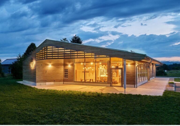 Der Allgäuer Genussbäcker in Leutkirch im Allgäu fügt sich nicht nur perfekt in das beeindruckende Alpenpanorama ein, sondern zieht auch durch seine moderne Architektur alle Blicke auf sich. Große Glasfronten, eine elegante Holzfassade und eine integrierte Photovoltaikanlage machen diese Filiale zu einem echten Highlight – ein Musterbeispiel für zeitgemäßen, nachhaltigen Bäckereibau.
